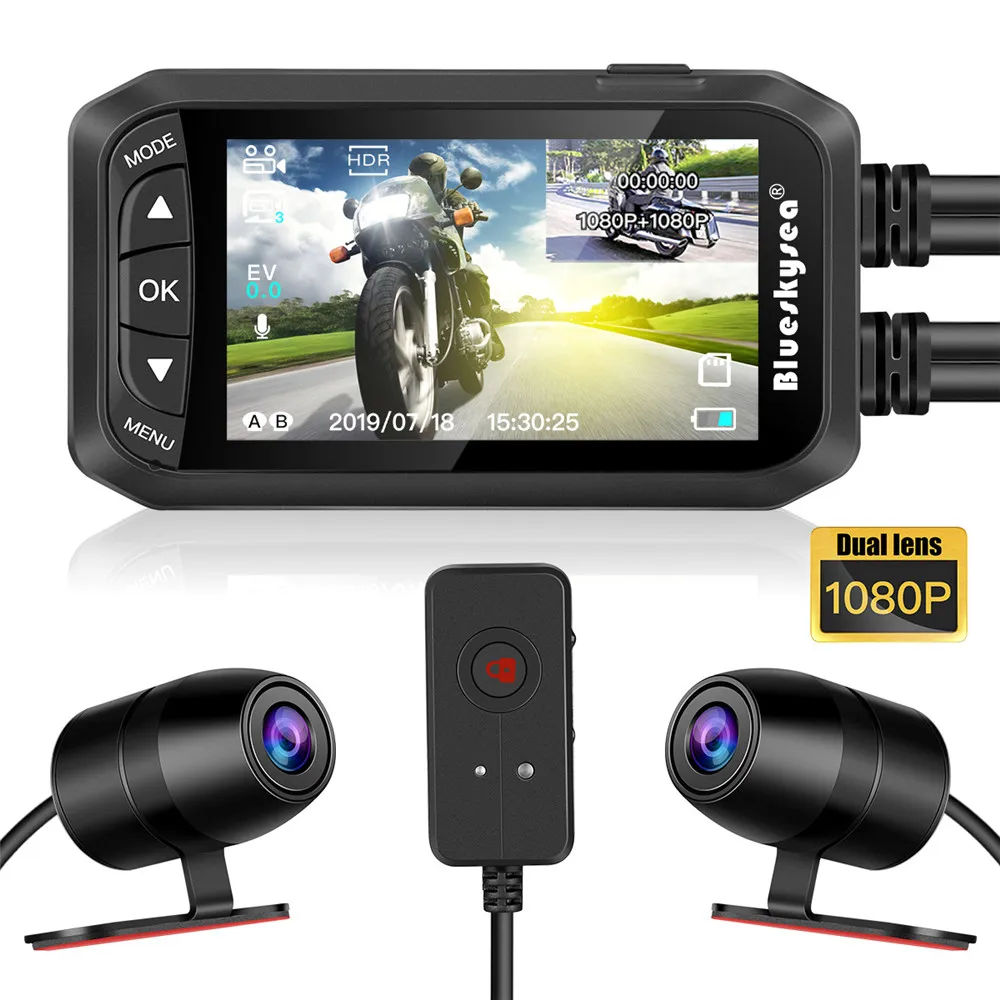 .image of Blueskysea 2.7" LCD DV128 Motorcycle Dual DVR Camera HD Waterproof GPS Dash Cam 1080P G-Sensor Moto