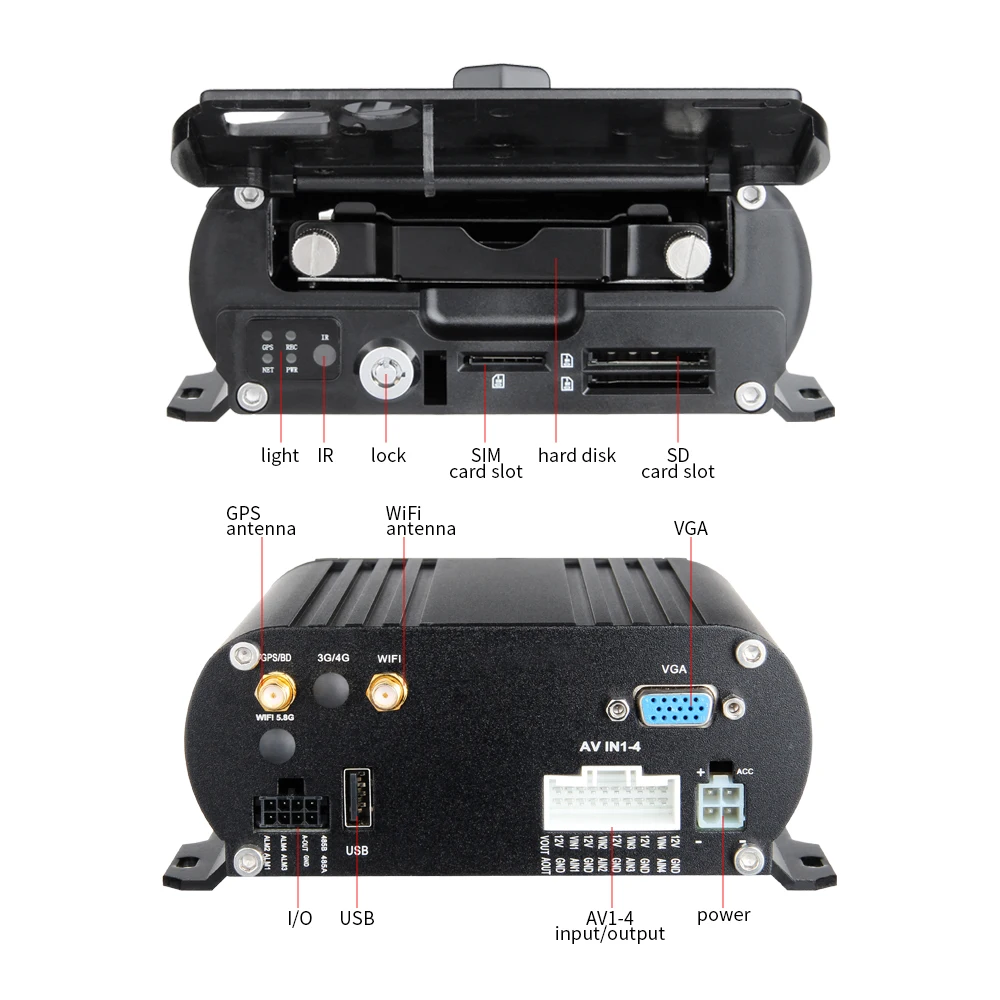 .image of WiFi+GPS 4CH Hard Disk Truck Mobile DVR Security1080P Remote Monitor GPS Track 2TB Cycle Recording