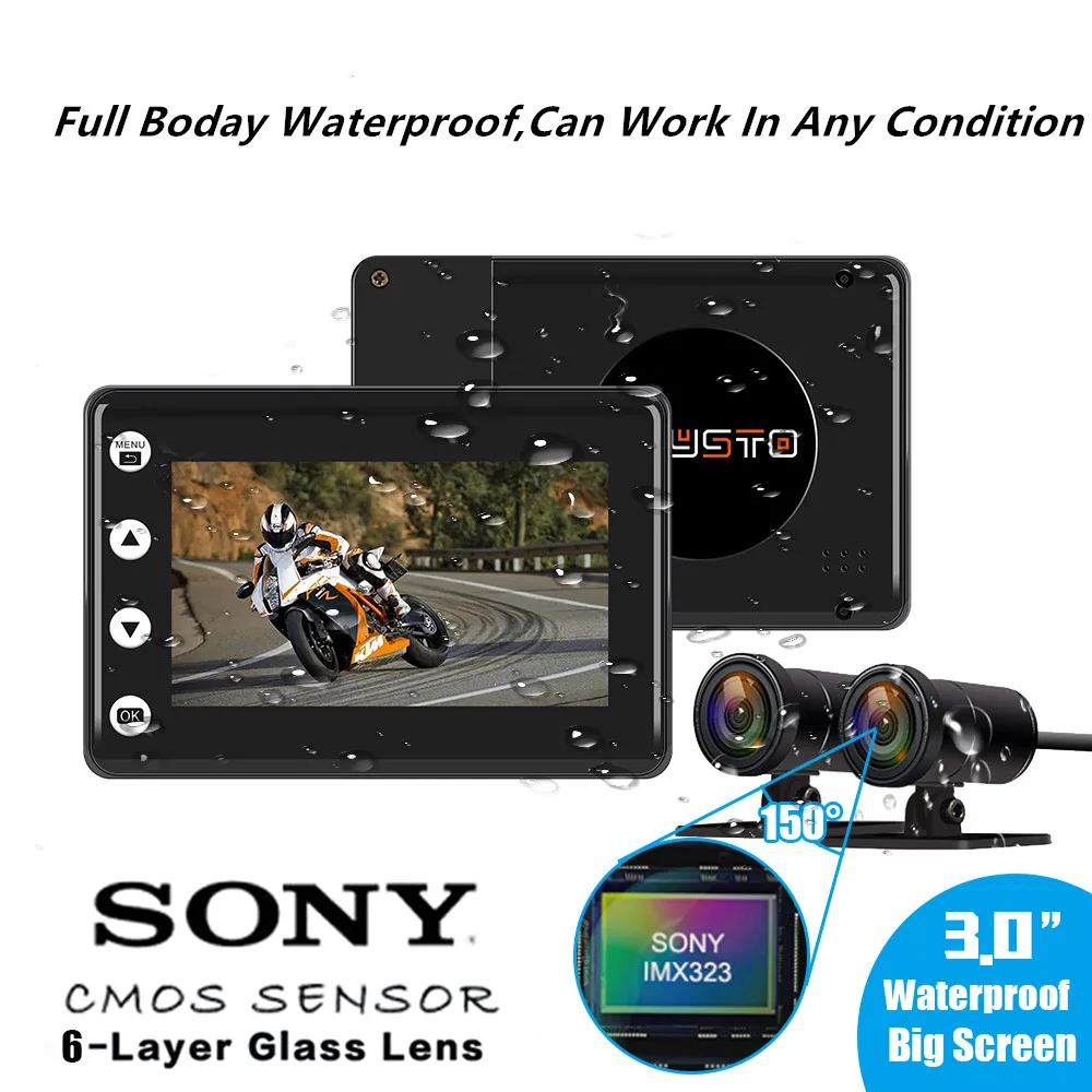 Premium 2020 Newest VSYSTO Newest Dual SONY IMX 323/307 sensor 1080P FHD STARVIS WiFi motorcycle DVR with 150° super wide view angleGet 85% OFF, VALID UNTIL TOMORROW