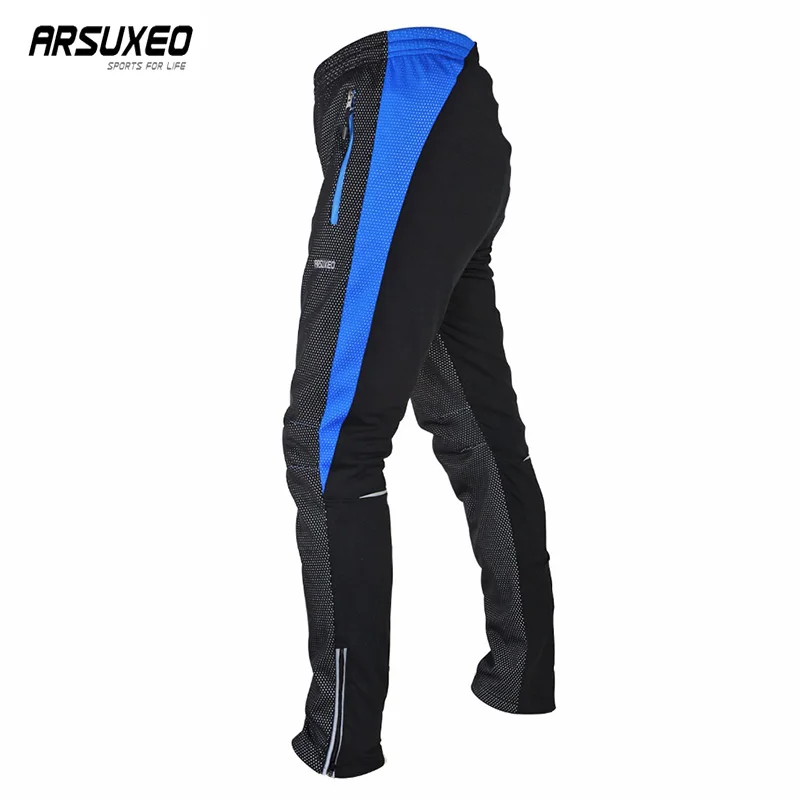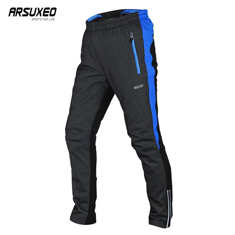 ARSUXEO Winter Cycling Pants Men Quick Drying Sport Pants MTB Pants Fleece Windproof Trousers Reflection Trousers