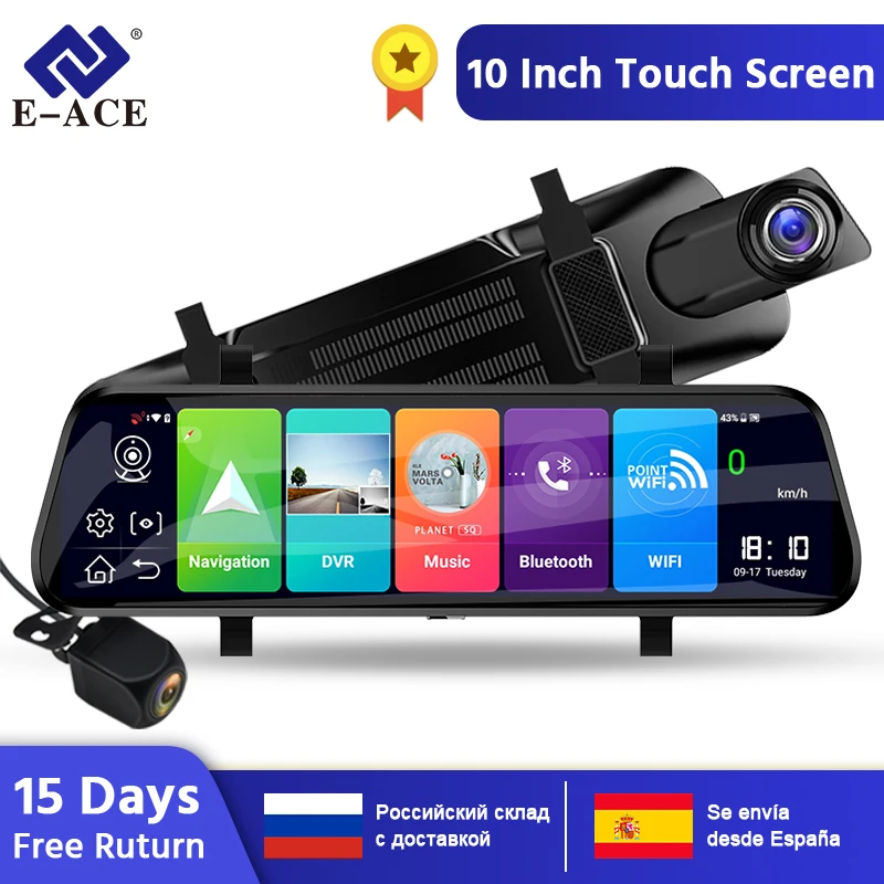 Good Offer for E-ACE D13 Car Dvr 10 Inch Rearview Mirror Full HD 1920x1080 Car Camera 4G Android GPS Dash Cam Dual